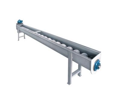 該機(jī)由筒體(筒體設(shè)計(jì)形式有“U”型敞口或加蓋、“O”型密封兩種)、螺旋輸送軸、端蓋、動力傳動裝置等部分組成。設(shè)備全部采用優(yōu)質(zhì)不銹鋼材料制作,結(jié)構(gòu)簡單,運(yùn)行平穩(wěn)可靠,廣泛適用于各種干濕物料的水平或傾斜輸送。在輸送原料是蘋果、梨等水果時,輸送葉片四周焊接不銹鋼圓,以防原料在輸送過程中被葉片切碎。